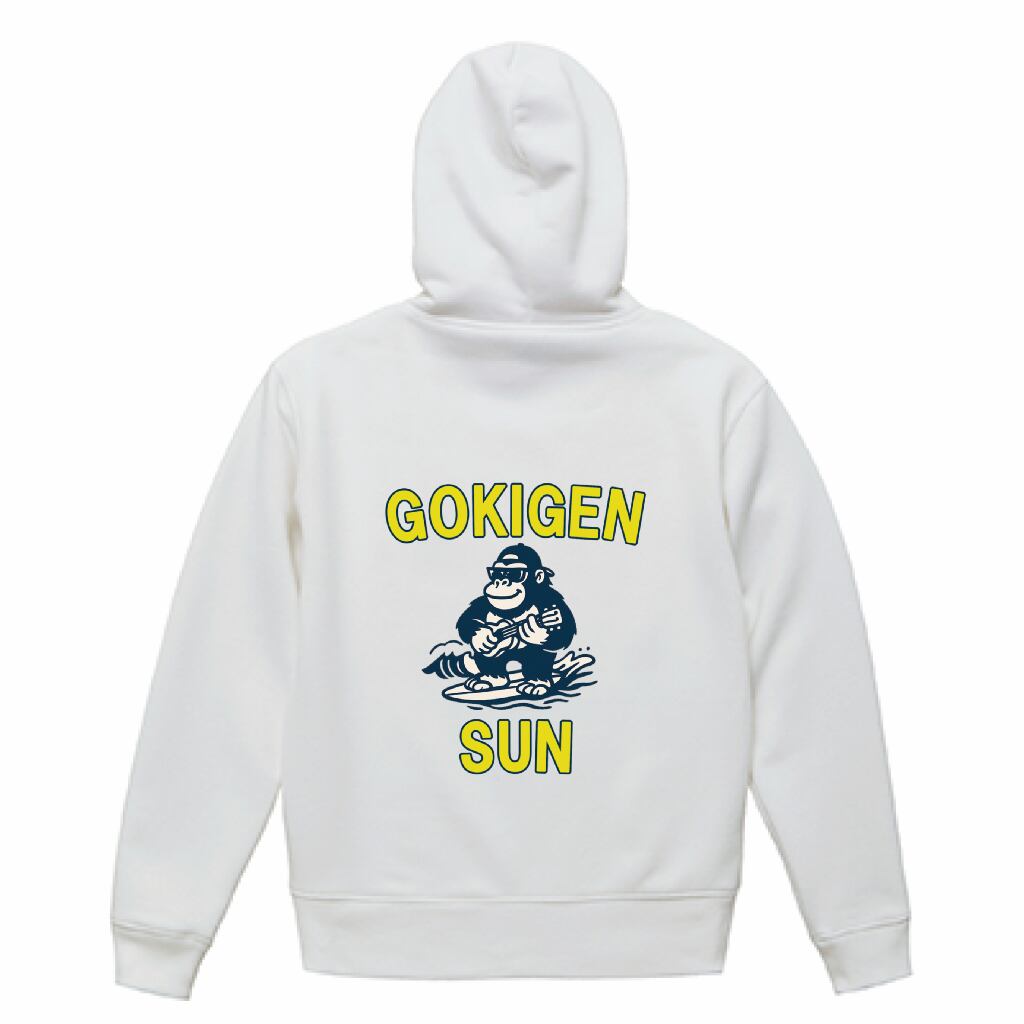 「GOKIGEN SUN(ごきげんさん)」 サーフゴリラ・バックプリントフーディ【オリジナルデザイン】