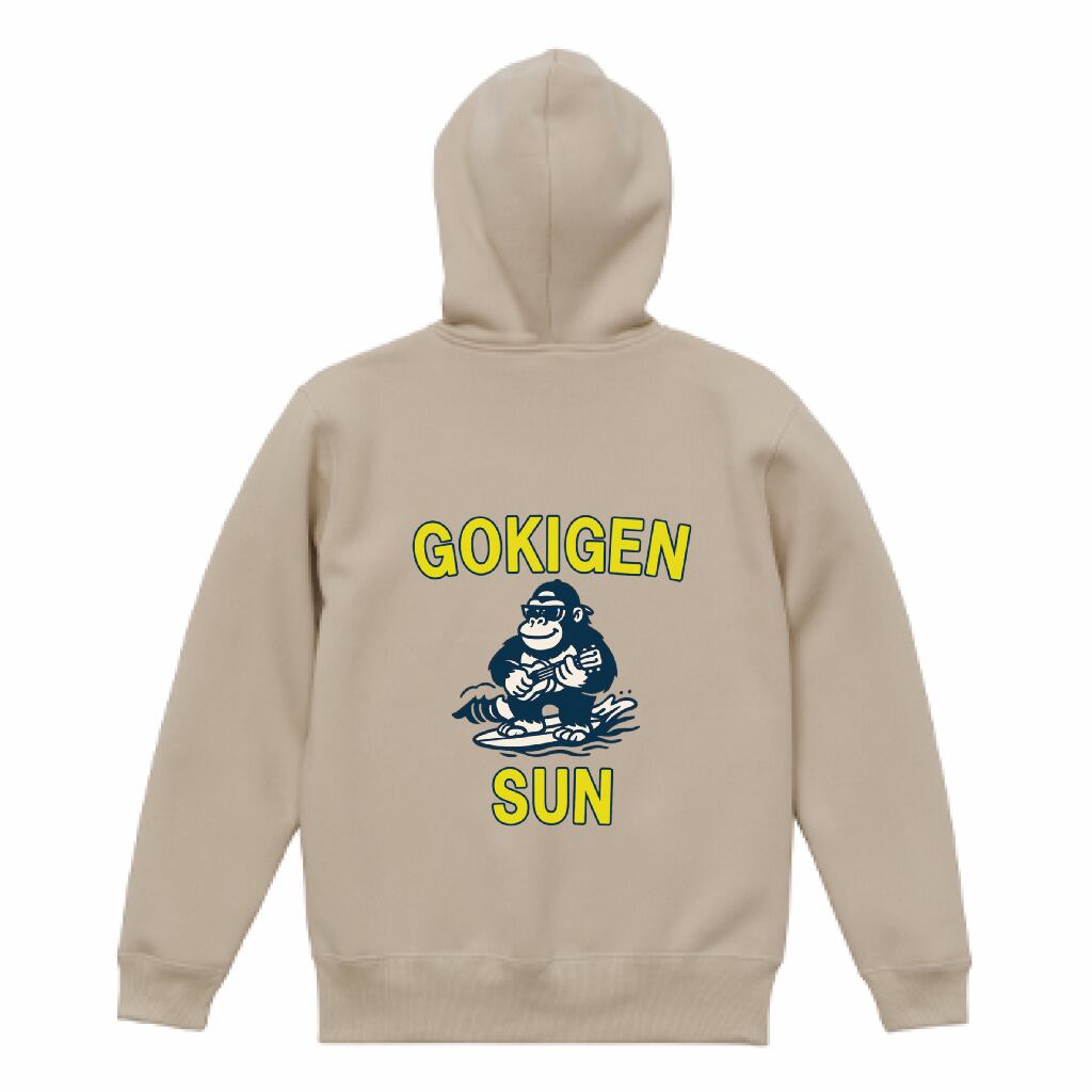 「GOKIGEN SUN(ごきげんさん)」 サーフゴリラ・バックプリントフーディ【オリジナルデザイン】