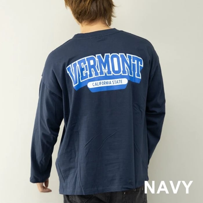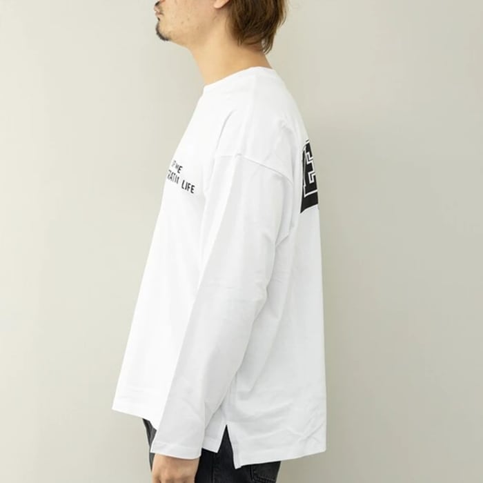 魅力のビッグシルエット ロゴプリント 長袖Tシャツ。